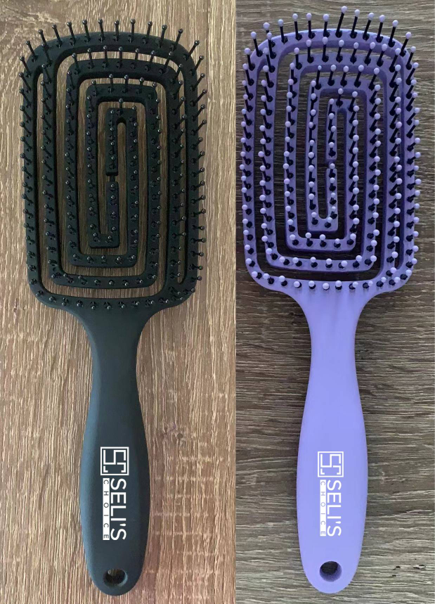 Upgrade your hair care routine with Seli's Choice Wet Brush Professional Flex Vent Hair Brush. Experience the ultimate combination of speed, efficiency, and care with this innovative brush designed to speed up blow-drying time while gently detangling all hair types. Its unique geometrical design perfectly contours to the shape of your head, ensuring damage-free brushing and detangling, while its nonslip, water, and heat-resistant features make it the perfect choice for wet or dry hair. Say goodbye to tugging and hello to healthy, beautiful hair. Suitable for all hair types.